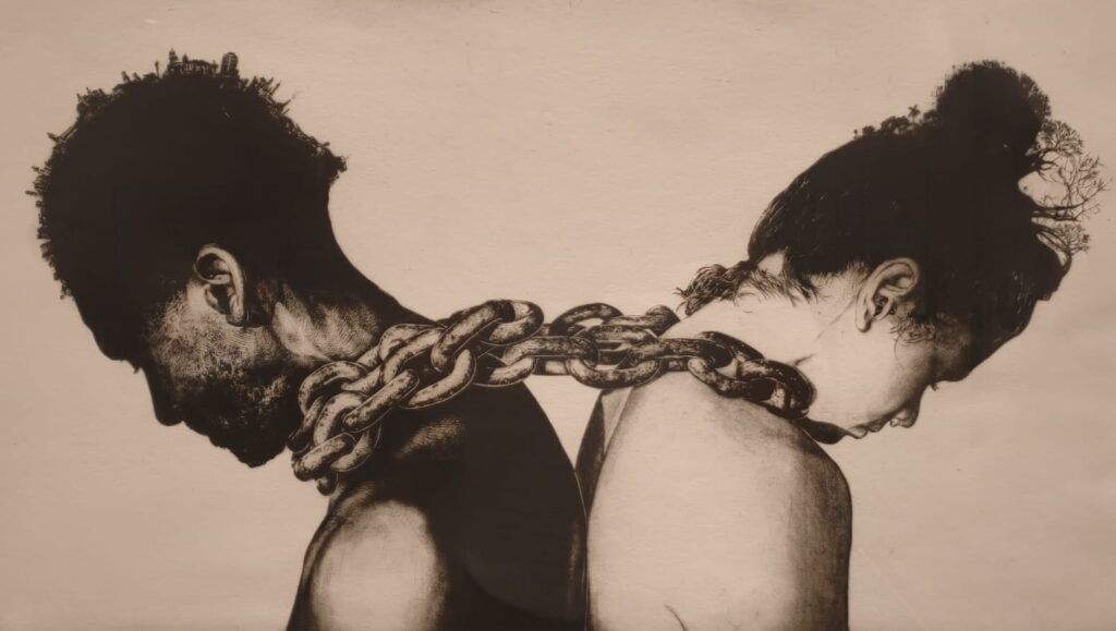 Enrique “Tente” Miralles, originario de La Habana en 1972, se formó en la Academia Nacional de Bellas Artes San Alejandro y en el Taller Experimental de Gráfica de La Habana, dos de los centros más importantes de formación artística en Cuba. Desde entonces ha desarrollado un estilo personal que combina el rigor técnico del grabado clásico con un lenguaje simbólico que oscila entre lo poético, lo autobiográfico y lo crítico. En su producción es constante el uso de materiales diversos, texturas, transparencias y objetos encontrados, lo que le permite experimentar con nuevas formas expresivas sin abandonar la tradición artesanal del grabado.