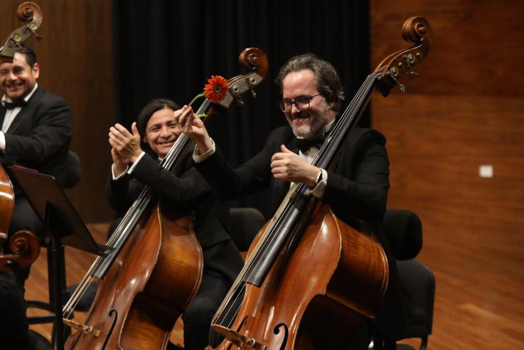 Difícil partitura con pasajes solistas entre los que destaca la ejecución de la marimba sin acompañamiento orquestal, y de pronto el güiro, el pícolo, el piano… La orquesta en su conjunto se escuchó con gran brillo gracias al conocimiento, a la calidad y a la concentración de cada uno de los instrumentistas al mando de unas manos sin batuta, un corazón desbordante y una experiencia a toda prueba. Con esta obra cumbre en la producción sinfónica de Eugenio Toussaint quedó de manifiesto ese talento en donde el silencio y no solo el sonido forma parte de su definición de la música. En su partitura el virtuoso pianista, destacado compositor y profundo artista parece habernos dicho “polvo eres y en música te convertirás”