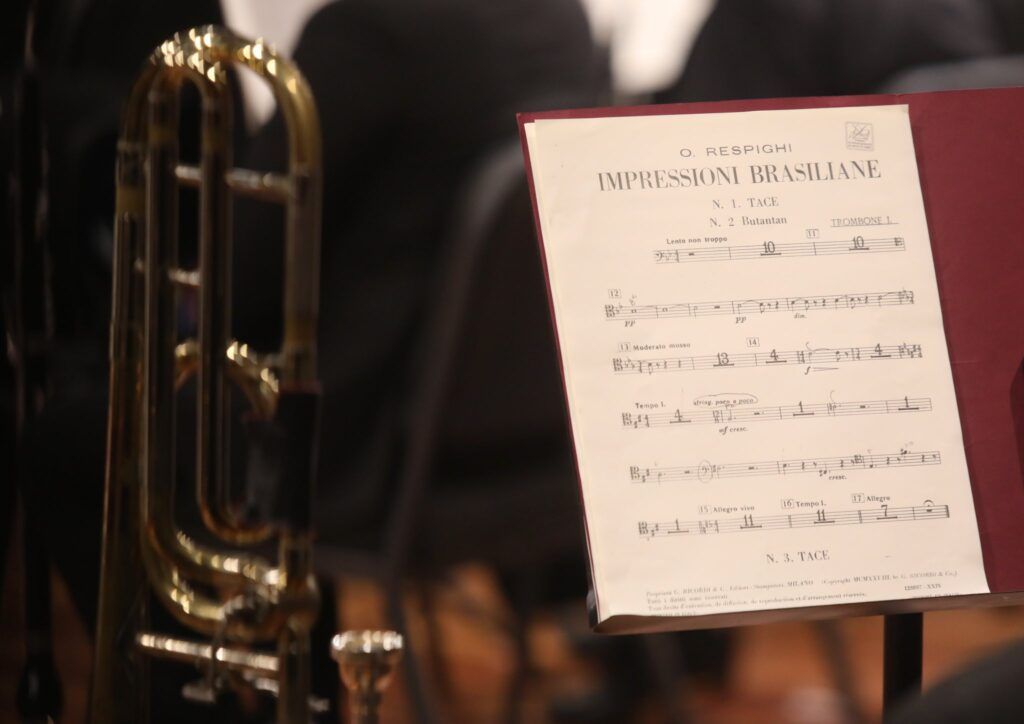 Como aquellas postales que los viajeros enviaban por correo para compartir sus andanzas viajeras, las “Impresiones Brasileñas” de Ottorino Respighi nos remontan al país del carnaval en un sofocante día de calor, nos invita luego a un riesgoso recorrido entre serpientes ondulantes, fluidas y precisas y finalmente nos lleva al canto y a la danza que presencia y escucha sin reproducir en su composición las típicas notas y el color de la música del Brasil sino que reinterpreta desde su perspectiva musical influida entre otras corrientes, por la música italiana y el impresionismo al modo de Debussy.