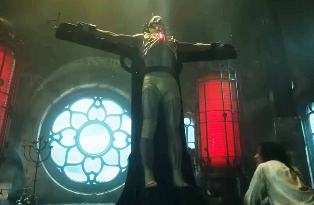 Aun con esas inconsistencias narrativas, la película se sostiene por su fastuoso diseño de producción. El Monstruo, de imponente presencia, evoca el Cristo en la cruz en un paisaje de Toledo de El Greco: su corporalidad elongada nos remite a un escorzo pictórico, una figura doliente y espiritual.