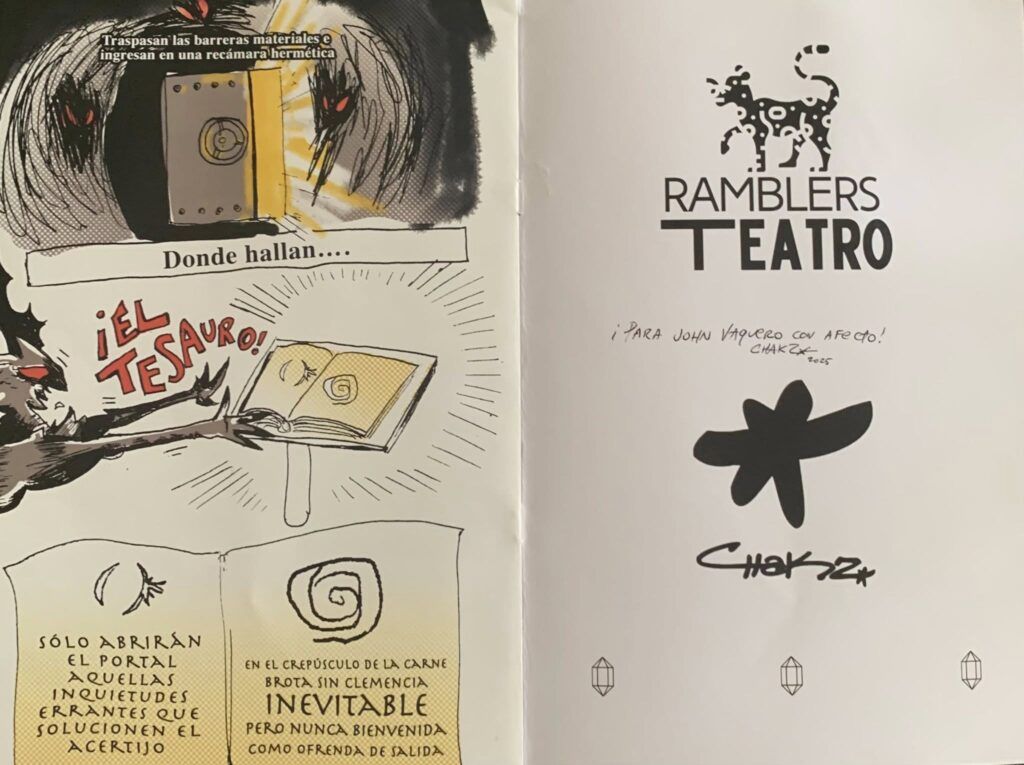 De manera paralela, el proyecto se enriquece con un componente interdisciplinario: el artista Chakz Armada diseñó un cómic conmemorativo que dialoga con la puesta y amplía sus capas de lectura, estableciendo un puente entre lo escénico y lo gráfico. Esta función especial propone cerrar el ciclo de Ónix dentro de un marco simbólico —la biblioteca— donde la memoria escrita y el acontecimiento teatral se encuentran. Es, además, una invitación a celebrar la convergencia entre la escena y los espacios culturales que resguardan el patrimonio colectivo.