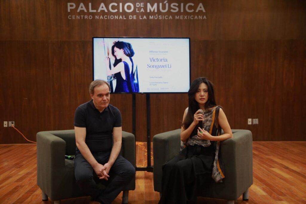 Durante la rueda de prensa, el maestro Scarano subrayó cómo, en La Voix Humaine, la orquesta actúa como interlocutor invisible que responde a la soprano sin eclipsarla; para esta representación permanecerá en penumbra, enfocando la luz en “Elle”, la protagonista sin nombre. La soprano Victoria Songwei Li, en su debut mexicano, en respuesta a una pregunta sobre el peso de la herencia de Denise Duval, primera intérprete de la ópera, y de Anna Magnani e Ingrid Bergman en el cine, insistió en la reinvención permanente del personaje: su universalidad permite introducir elementos personales, haciendo que Elle sea a la vez arquetipo y reflejo íntimo de quien la encarna.