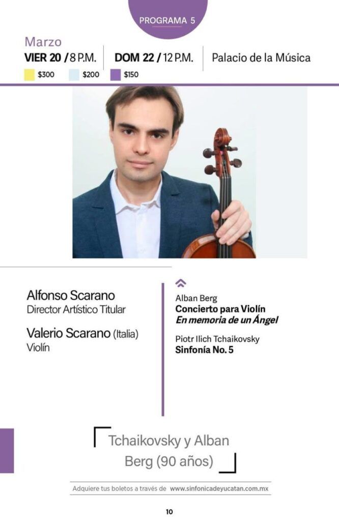 En un plano más íntimo, el concierto tendrá además un momento singular: Alfonso Scarano dirigirá por primera vez en Mérida a su hijo, el violinista Valerio Scarano. Más allá de lo anecdótico, el gesto adquiere una resonancia particular, quizá involuntaria: en un programa atravesado por la memoria, la pérdida y la transformación del dolor, la presencia de padre e hijo en escena introduce, sin proponérselo, una idea de continuidad: la música como herencia viva.