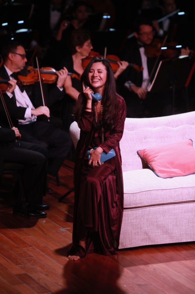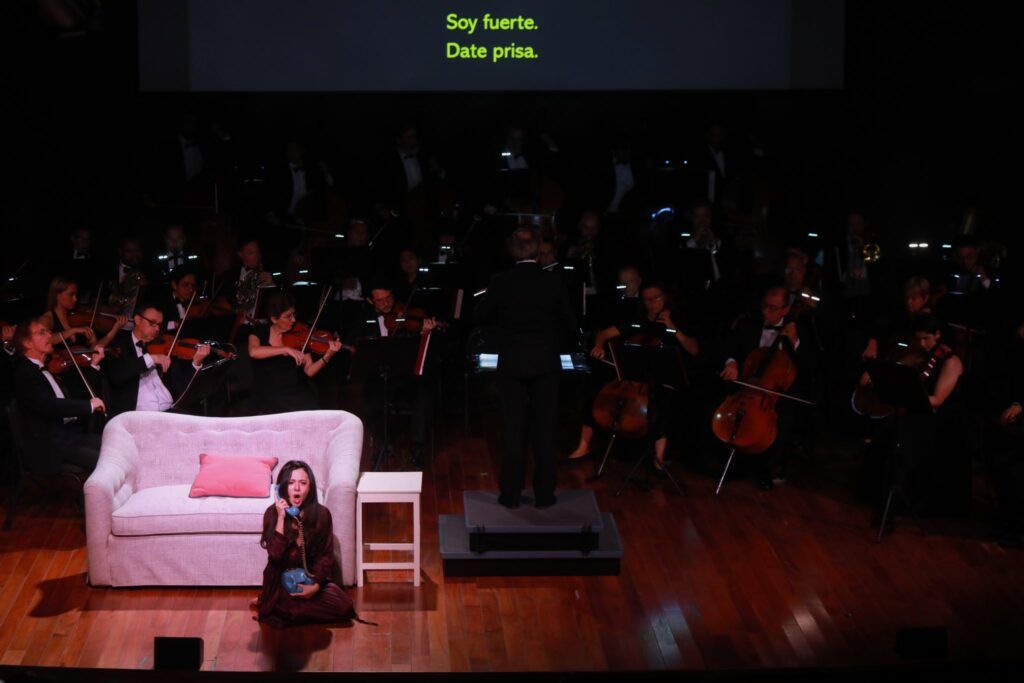 Una obra de gran dramatismo con un libreto que desahucia la esperanza y navega en la franca desesperación, transitando desde la incertidumbre hacia la degradación, entre episodios de dolorosos silencios y desgarradores momentos magistralmente ejecutados, genuinamente vividos en su interpretación, por la soprano Victoria Songwei Li, cuya prodigiosa actuación destacó también por la autenticidad de sus gestos, sus movimientos, su mirada sin resignación, en un escenario mínimo, un sofá, un teléfono, una larga llamada eventualmente interrumpida y retomada.